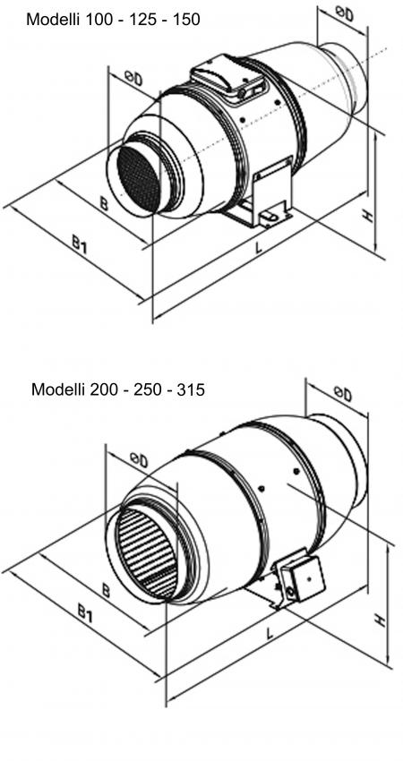 Fans for circular ducts with acoustic insulation and single-phase motor.
