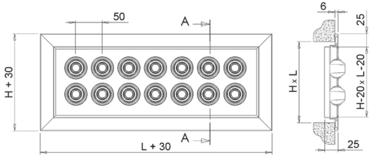Diffusori a microugelli orientabili su pannello rettangolare. Trovano applicazione in mandata dell’aria quando vi sia necessità di lunghe gittate a basso livello sonoro e/o orientamento del flusso d’aria.