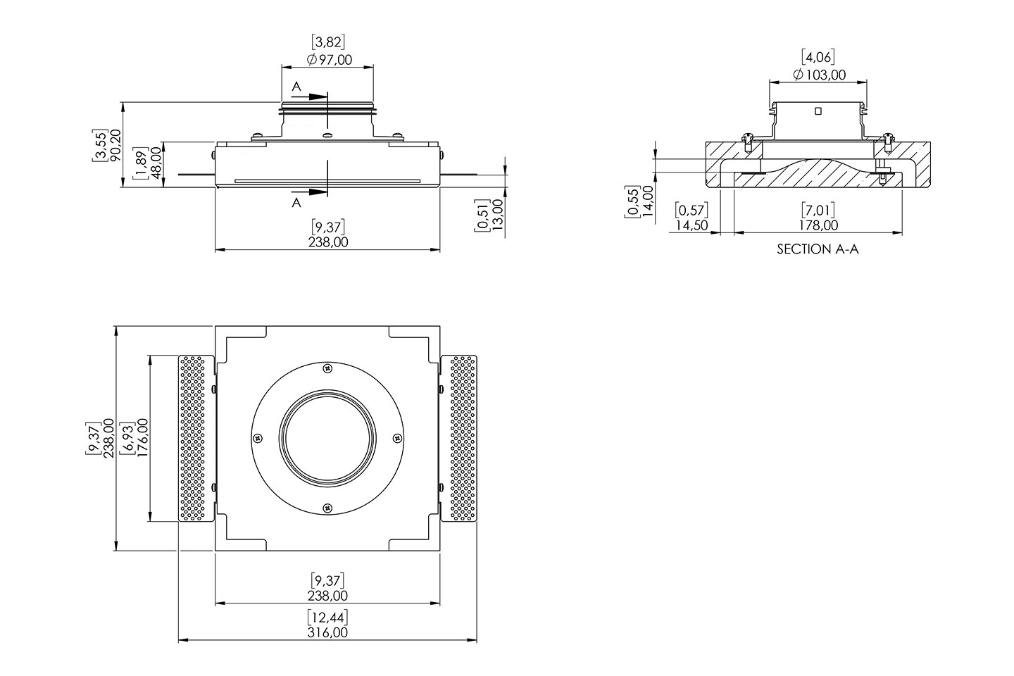 - progettati per installazione a incasso totale, senza elementi metallici o plastici a vista;