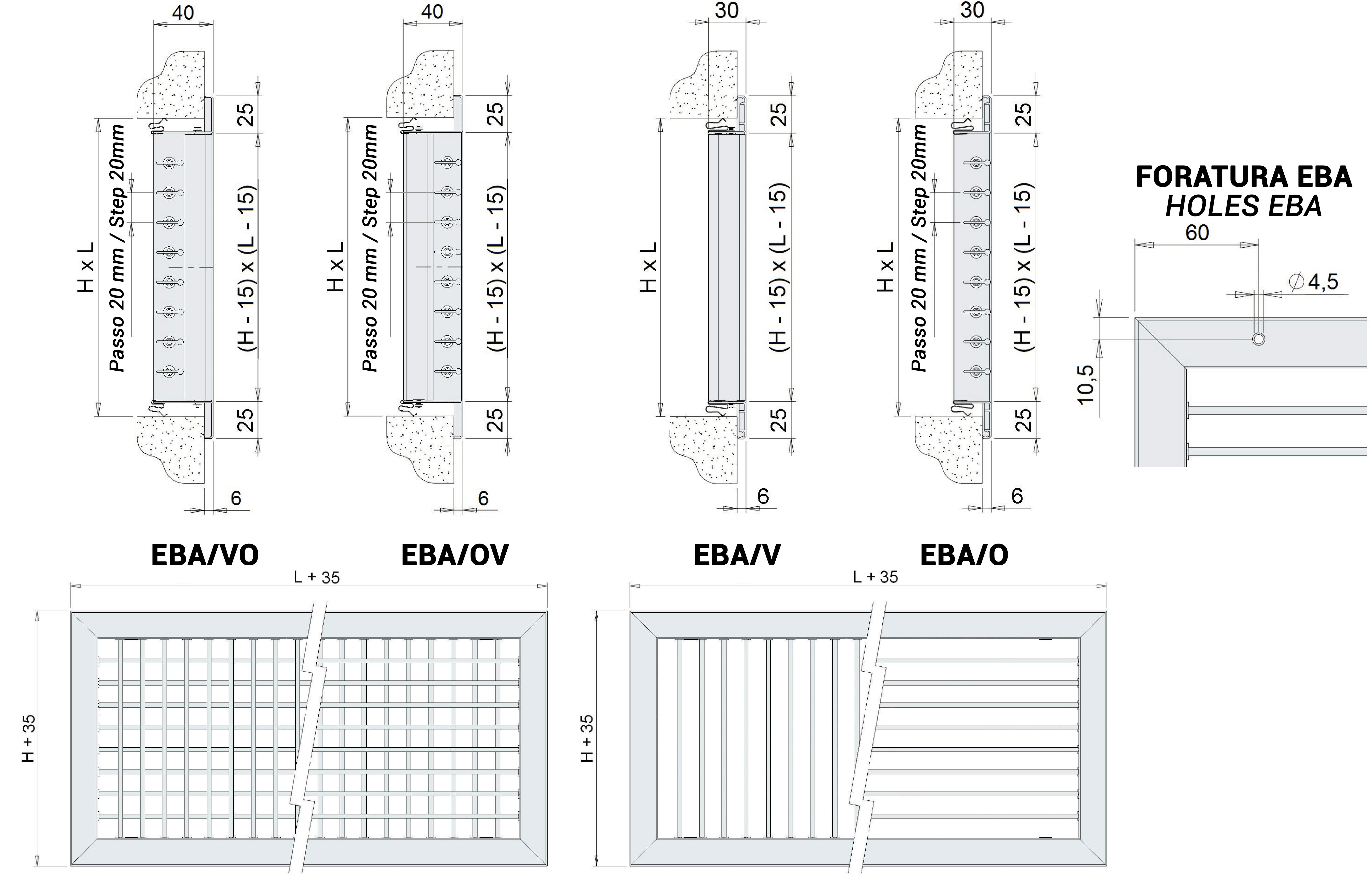 | Dimensioni | EBA-VO | EBA-OV | EBA-O | EBA-V |