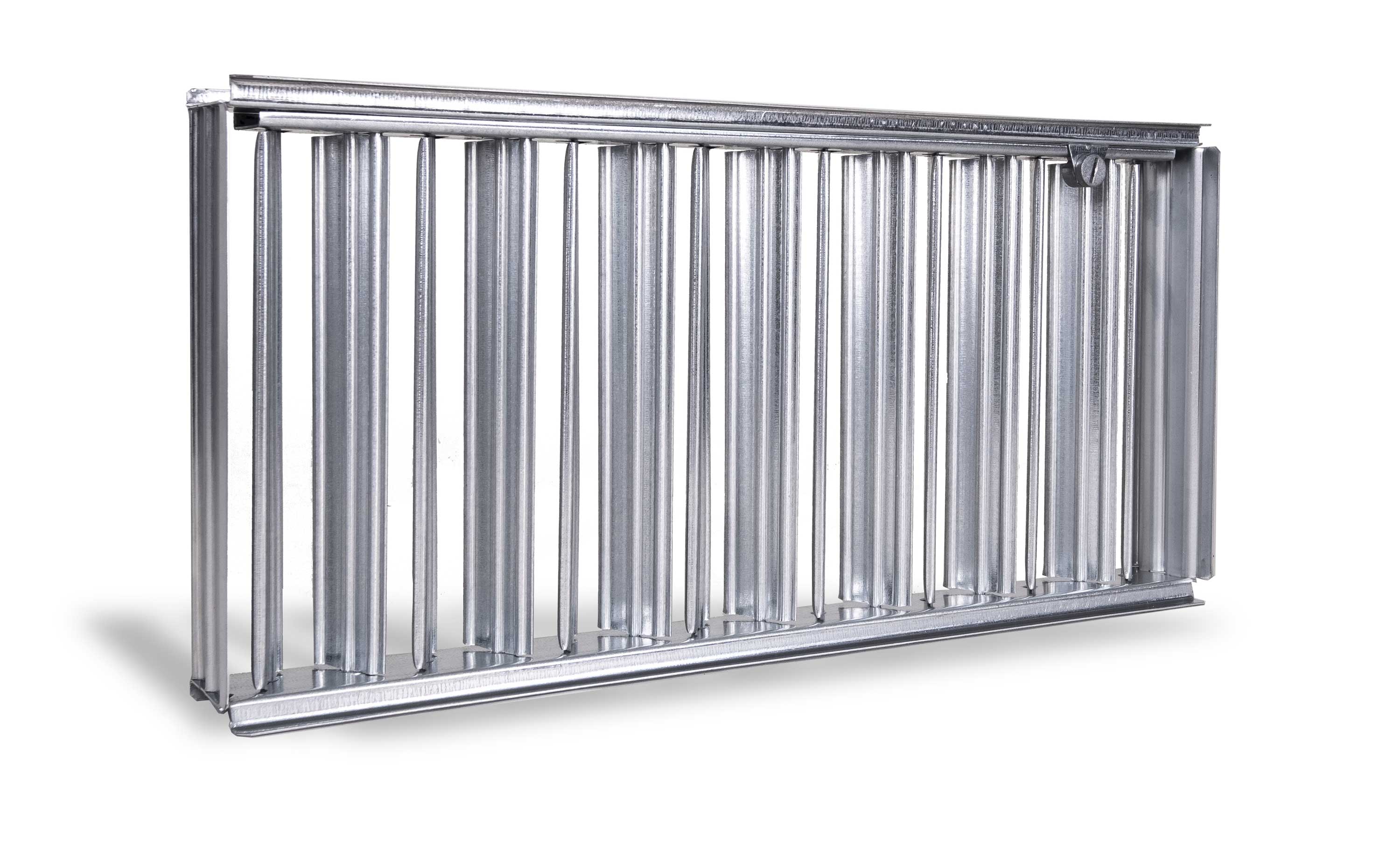 Serranda di taratura in acciaio zincato ad alette con movimento contrapposto.