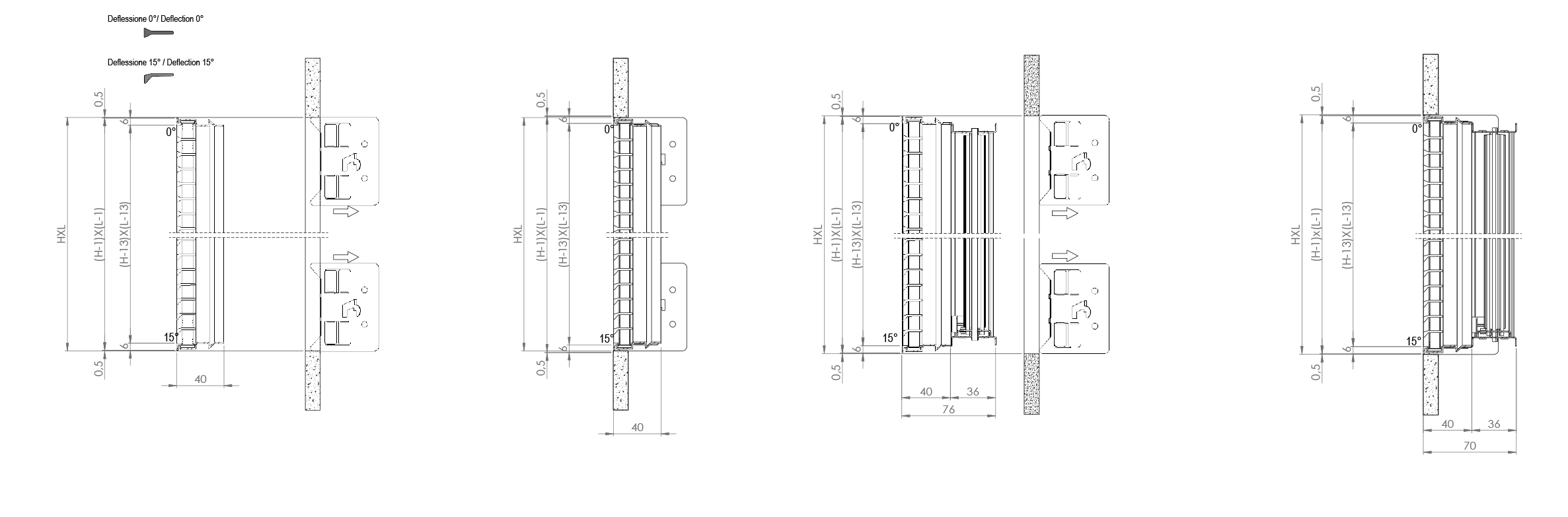 EBLF 20/0° EBLF 20/15° dimensioni con e senza serranda su muratura