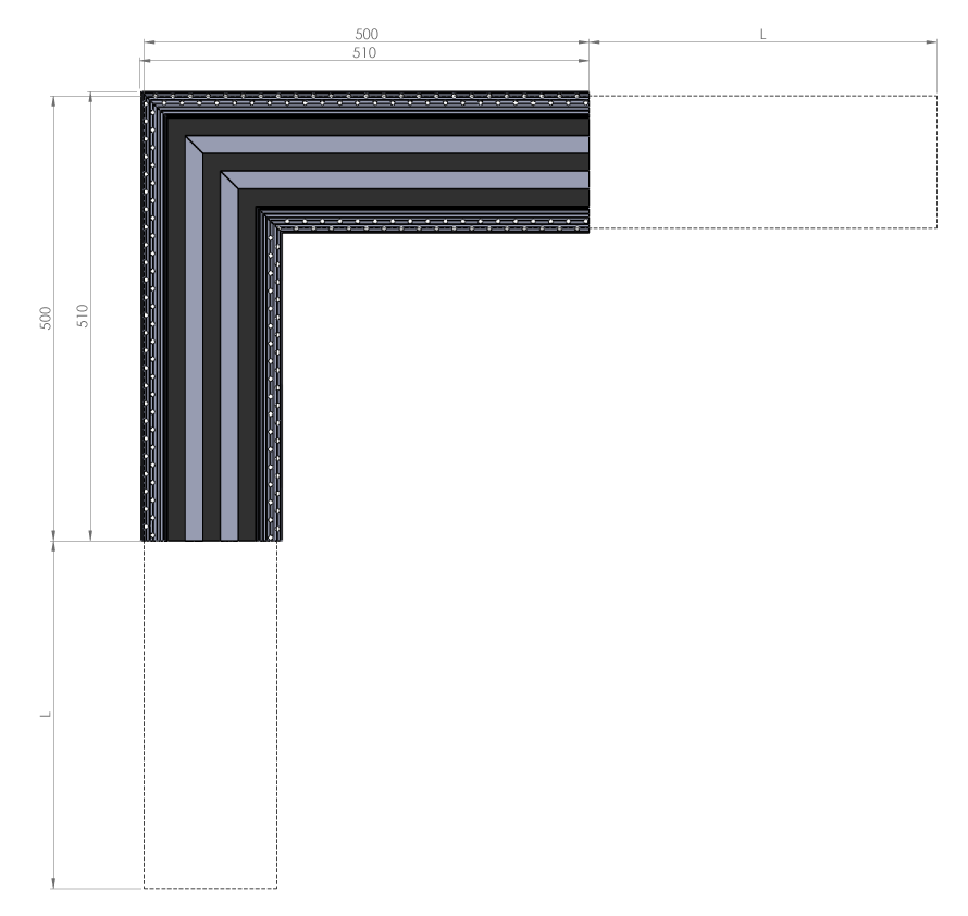 Elemento estetico di raccordo tra i due linee di diffusori lineari con angolo di 90° e lunghezza 500 mm per lato. Non ha funzionalità di ventilazione.