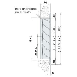 Le alette fisse sono inclinate a 45° con passo 50 mm.