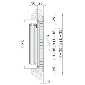 Con grigliato a maglia quadra 13x13 mm inclinata a 45° (EGQ-I)