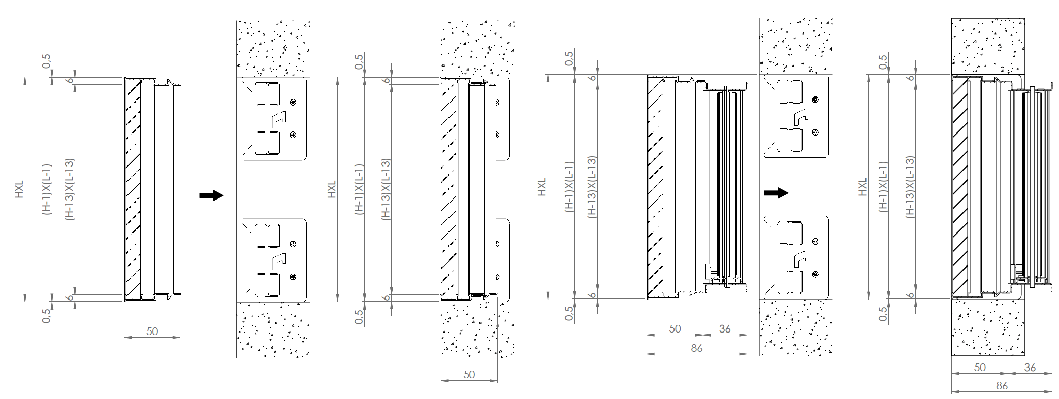 EGQIF dimensioni con e senza serranda su muratura