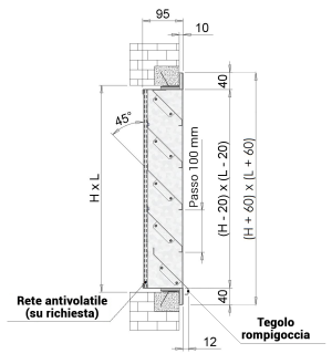 Le alette sono inclinate a 45° con passo 100 mm.