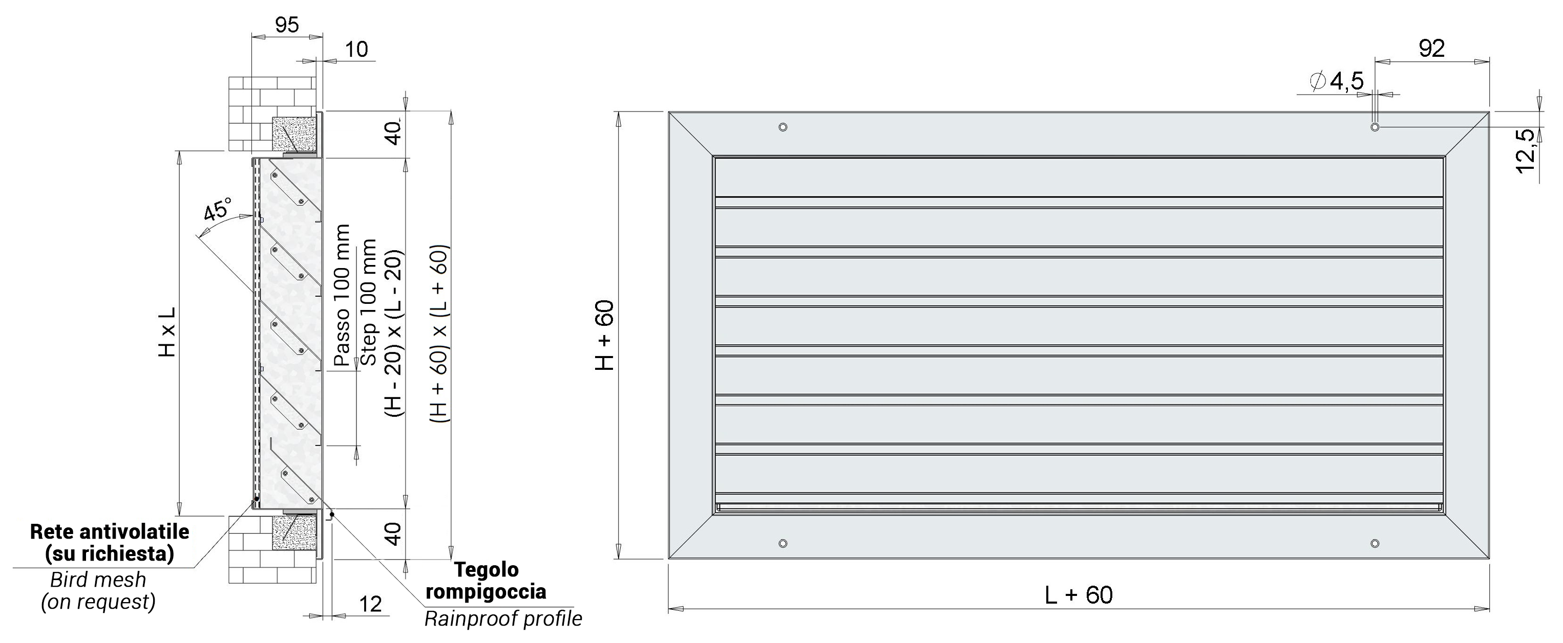 Sia per la ripresa che per l’espulsione dell’aria. Si possono utilizzare sia all’interno che all’esterno degli edifici grazie al particolare profilo antipioggia.