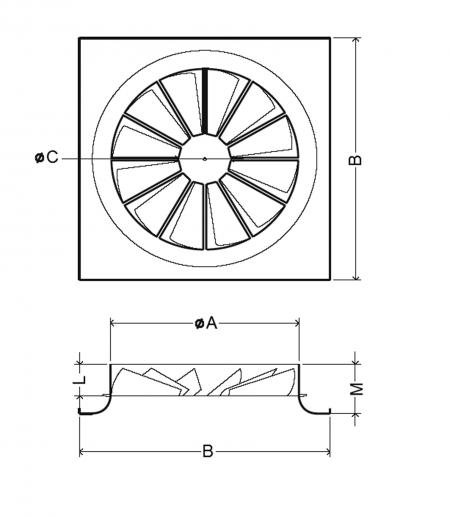 L(m): lancio in metri calcolato con installazione a filo soffitto e velocità terminale 0,25 m/s