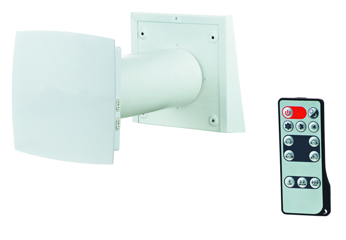 Recuperatore di calore per singola stanza con flusso d’aria reversibile e scambiatore ceramico con rendimenti fino al 90%.