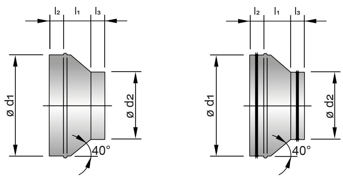 Riduzioni concentriche stampate in lamiera zincata.