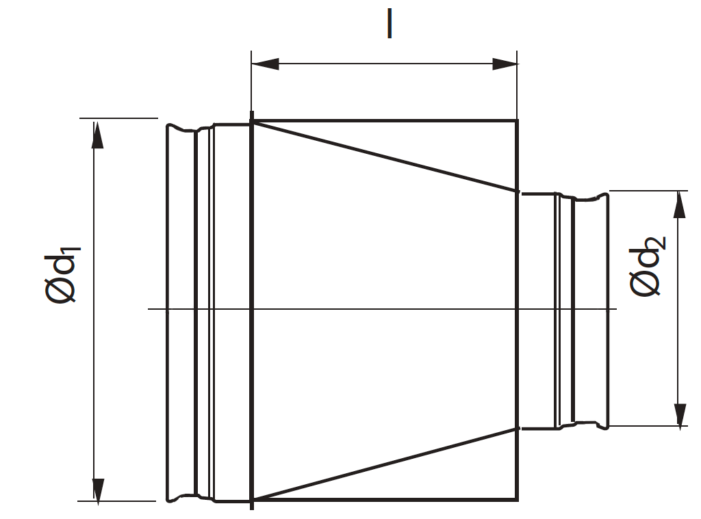 | Ø maschio d1 | Ø maschio d2 | L2 | L1 | L3 | Peso | rid. concentrica RC | rid. concentrica* RCG |