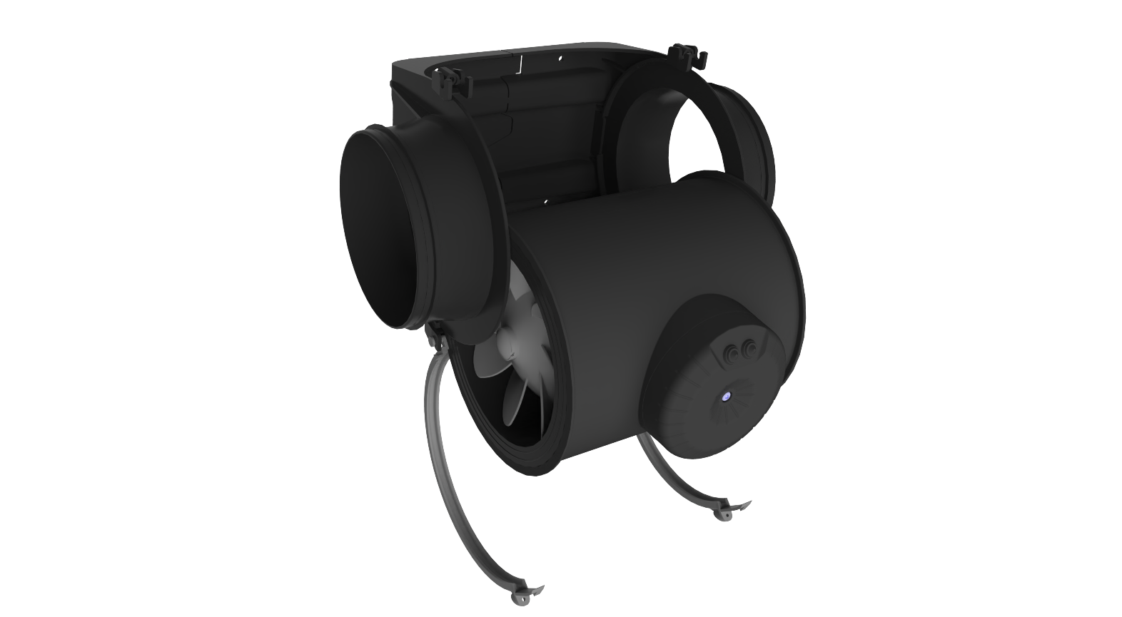 Per invertire il flusso dell’aria basta semplicemente ruotare il corpo centrale staccandolo dalle staffe. La rotazione del corpo centrale è anche utile per posizionare al meglio la morsettiera, così da ottenere una posizione d’accesso migliore.