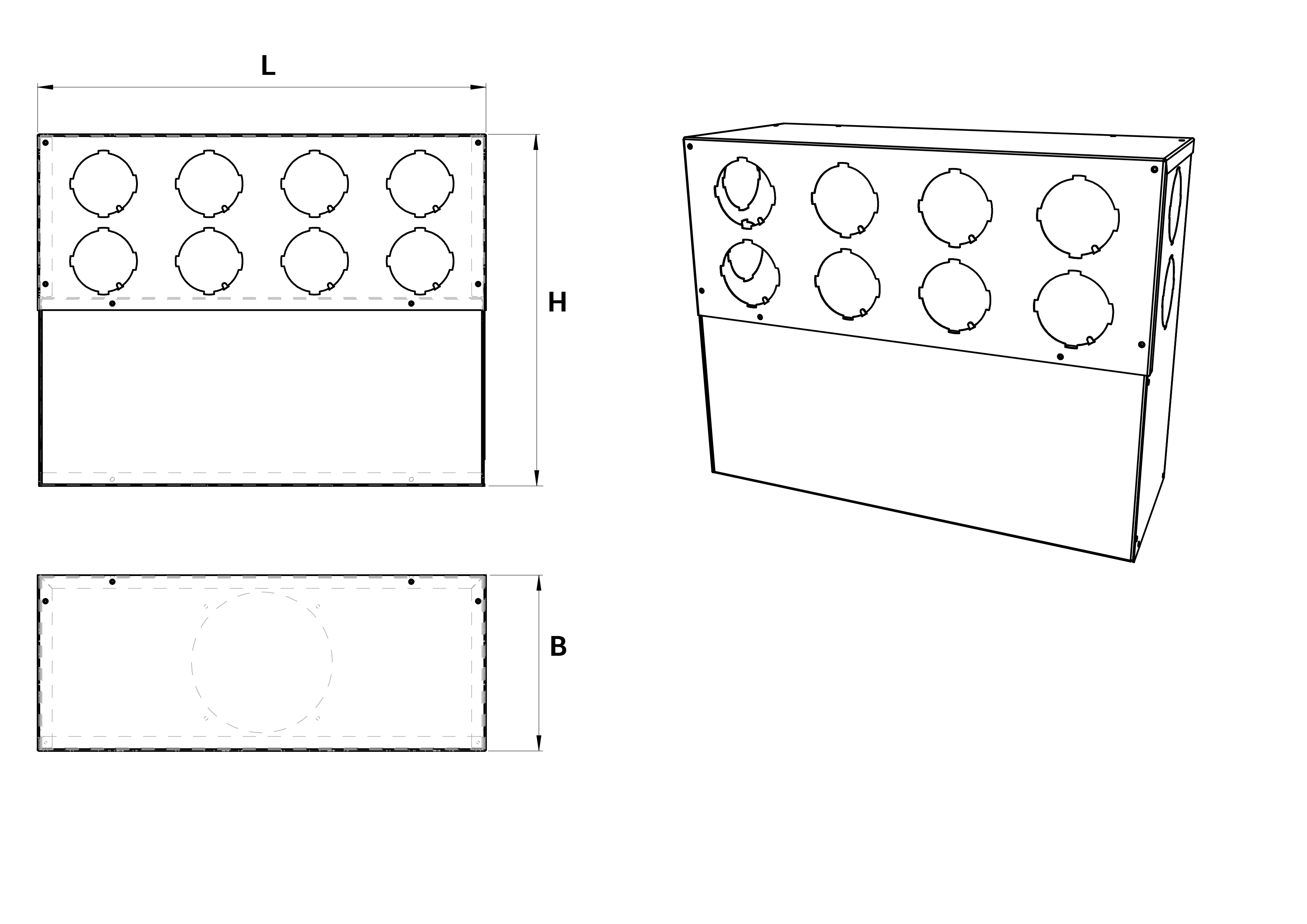 Ogni modello di EBOX-N è predisposto per l’applicazione di altri 4 manicotti laterali, 2 per ogni lato stretto.