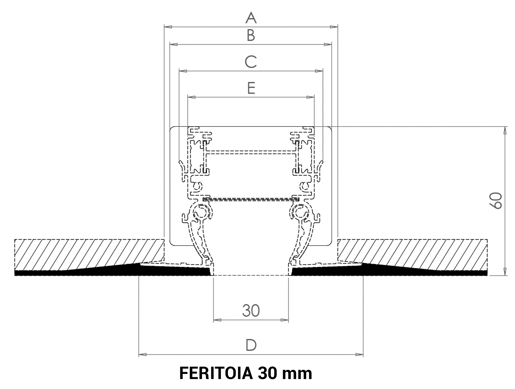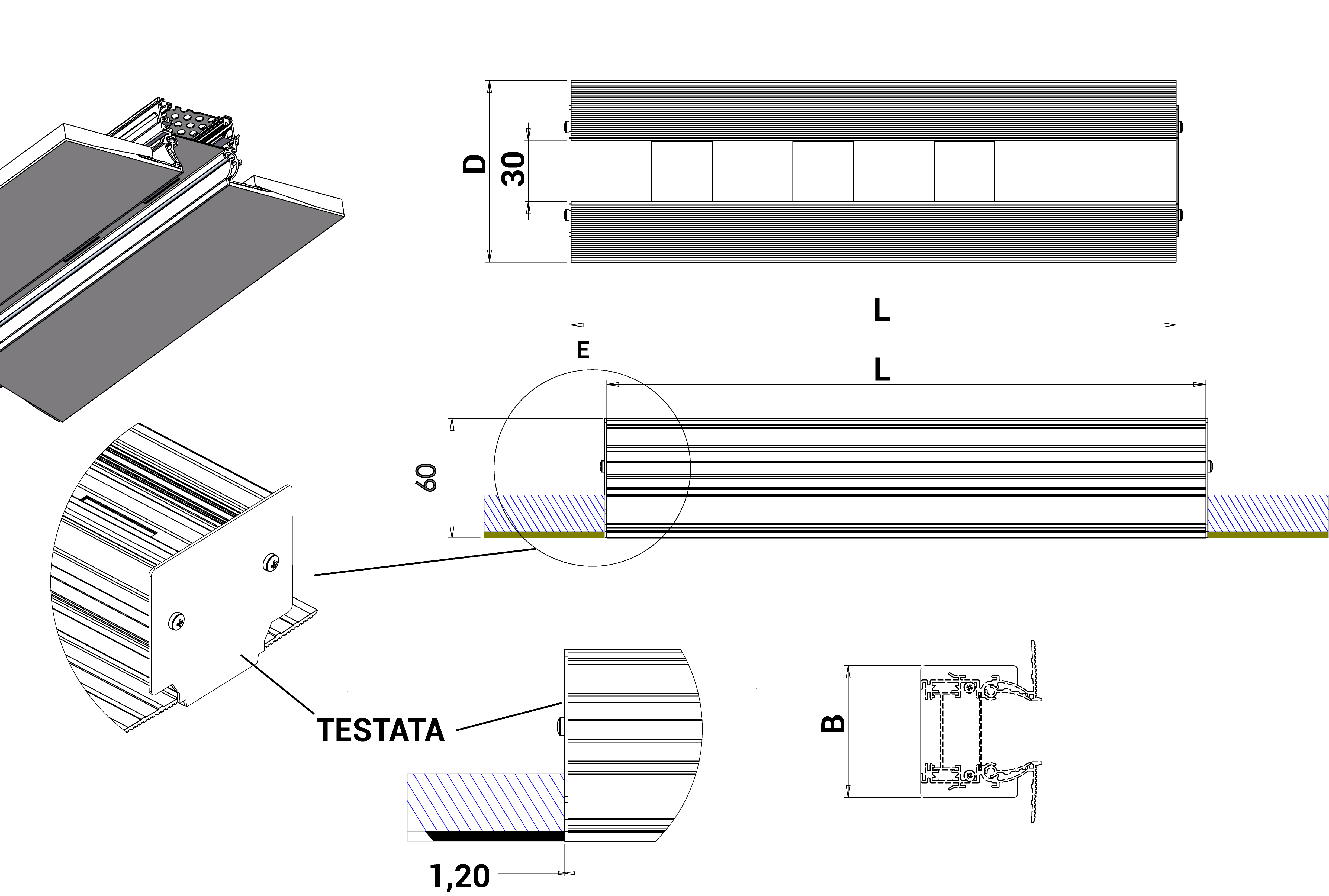 | L | A | B | C | E | D | Numero Ponti di Fissaggio |
