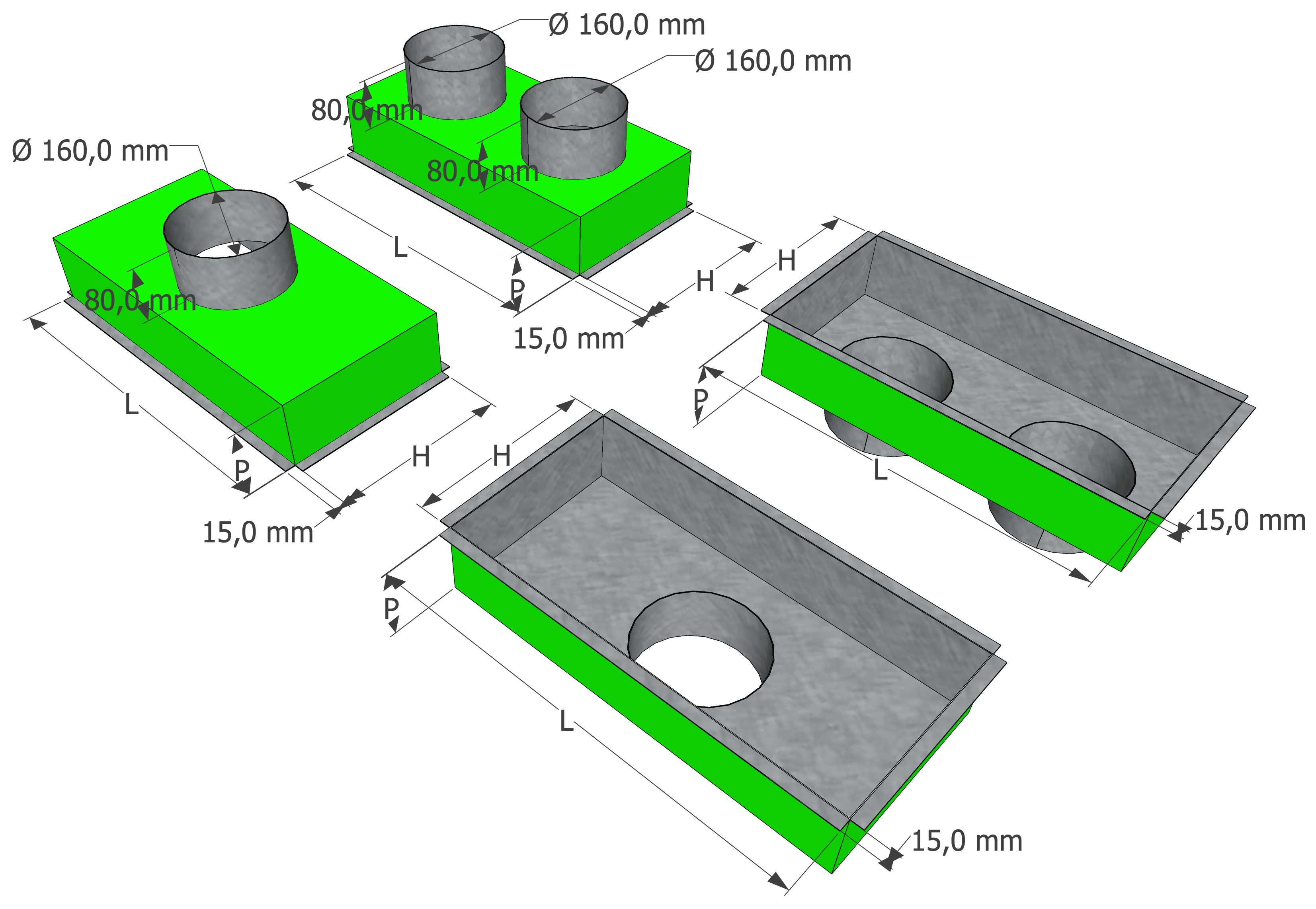 | Configurazione | Modello | L | H | P | Ø | euro |