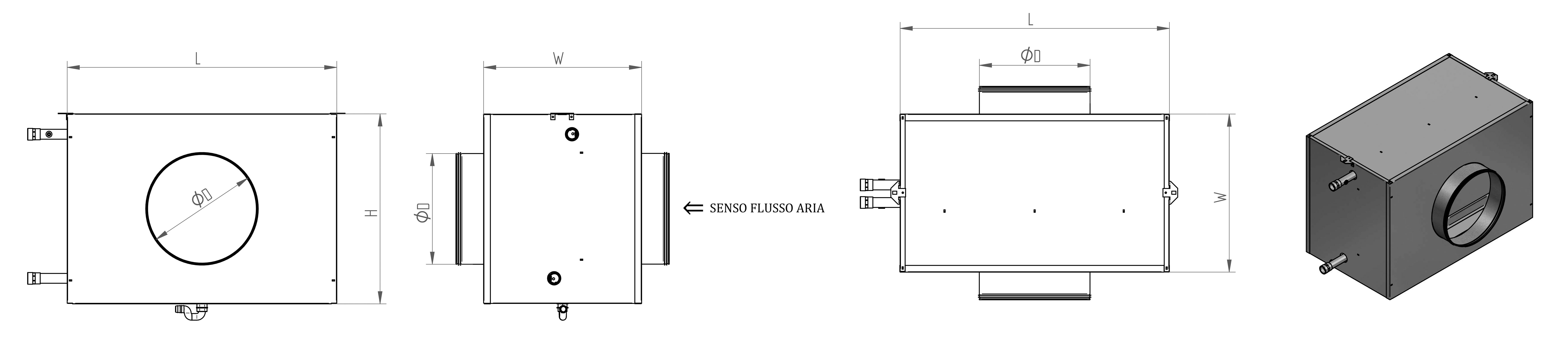Batteria ad acqua di pre o post riscaldamento e raffrescamento costituite da telaio in lamiera zincata, tubi in rame ed alette in alluminio. Struttura dotata di attacchi aeraulici circolari maschio con o-ring per facilitare l’installazione al condotto. Attacchi idraulici filettati comprensivi di valvole per lo sfiato dell’aria e per lo scarico della batteria.