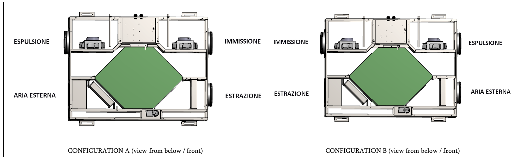 Struttura composta da telaio in lamiera zincata autoportante con Isolante adesivo in polietilene spessore 10+15mm. Vasca raccolta condensa in lamiera zincata, scambiatore di calore statico in alluminio in controcorrente con efficienza 80%, by-pass automatico, sbrinamento automatico dello scambiatore (tramite strategia anti gelo), ventilatori radiali a pale rovesce con motori EC a controllo elettronico di velocità, a basso consumo (Erp 2018 ), monofase (fino a taglia 200) e trifase (taglia 250, 300) che garantiscono elevati valori di pressione statica utile disponibile alla canalizzazione.