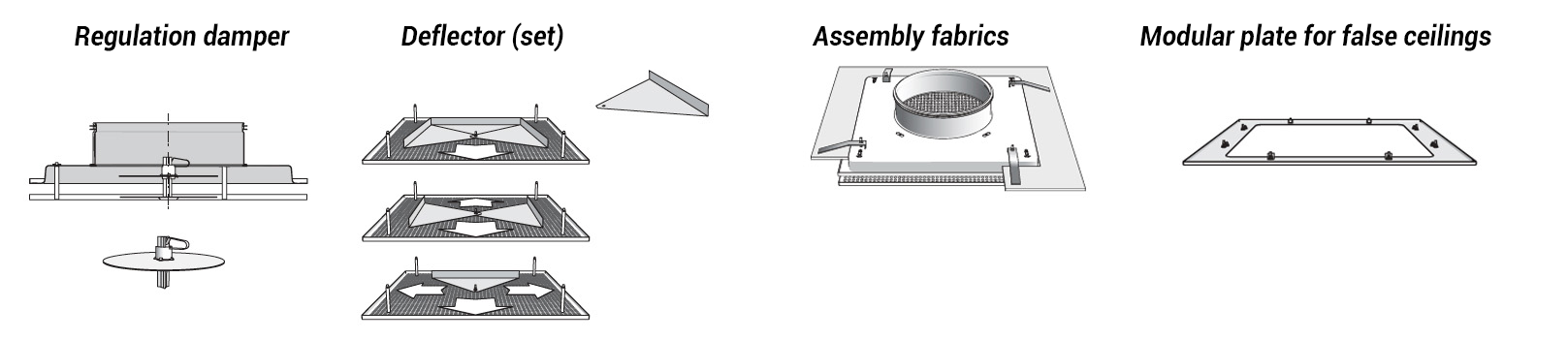 - EDLM-Q plate for false ceilings to install the diffuser on a modular false ceiling 600mm x 600mm.