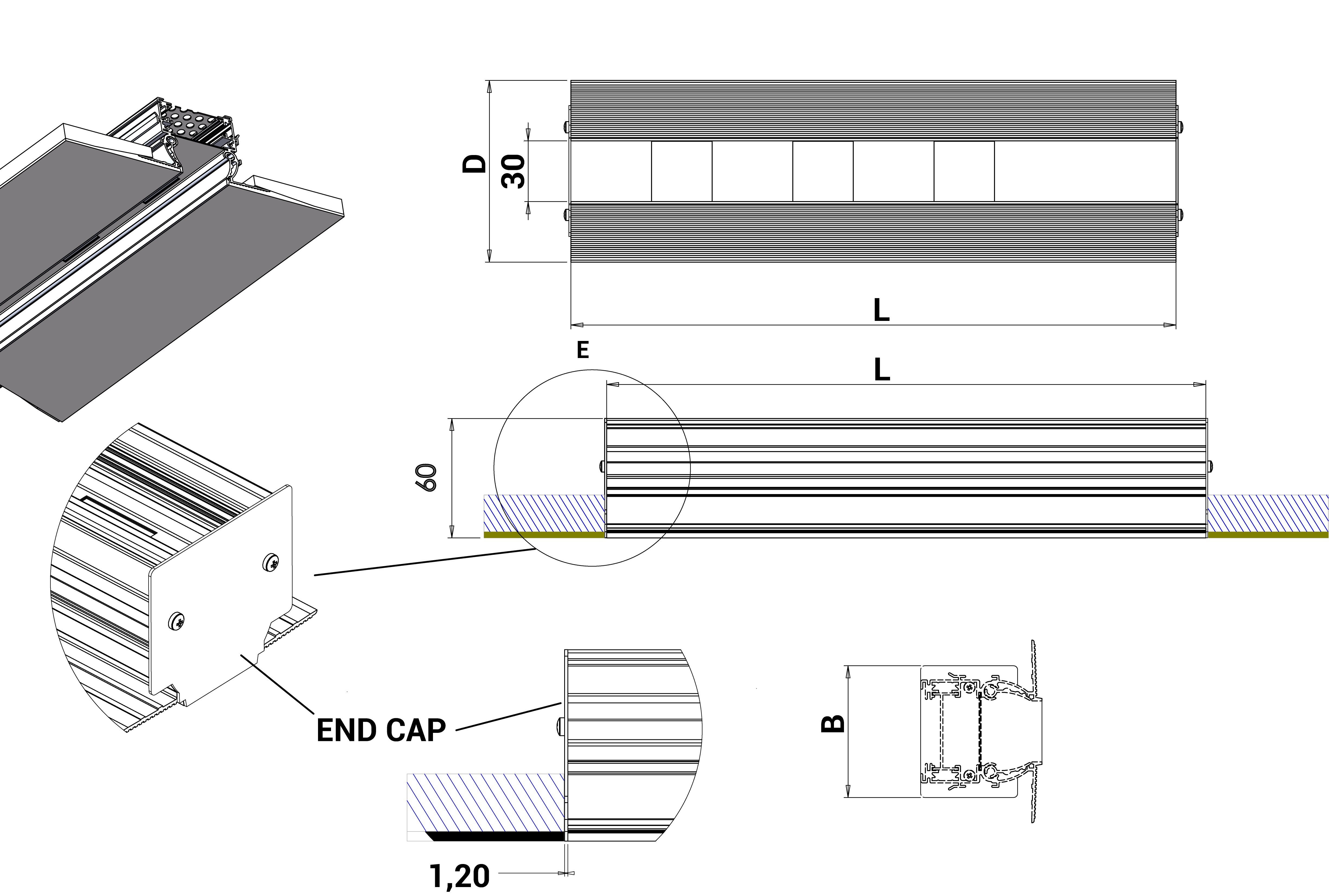 | L | A | B | C | E | D | Nr. of Mounting Bridges |