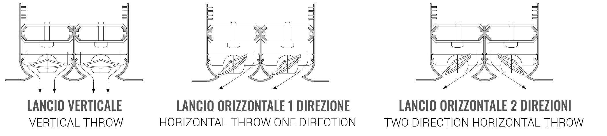 Lv(m): lancio verticale in metri calcolato con installazione a filo soffitto e velocità terminale 0,25 m/s