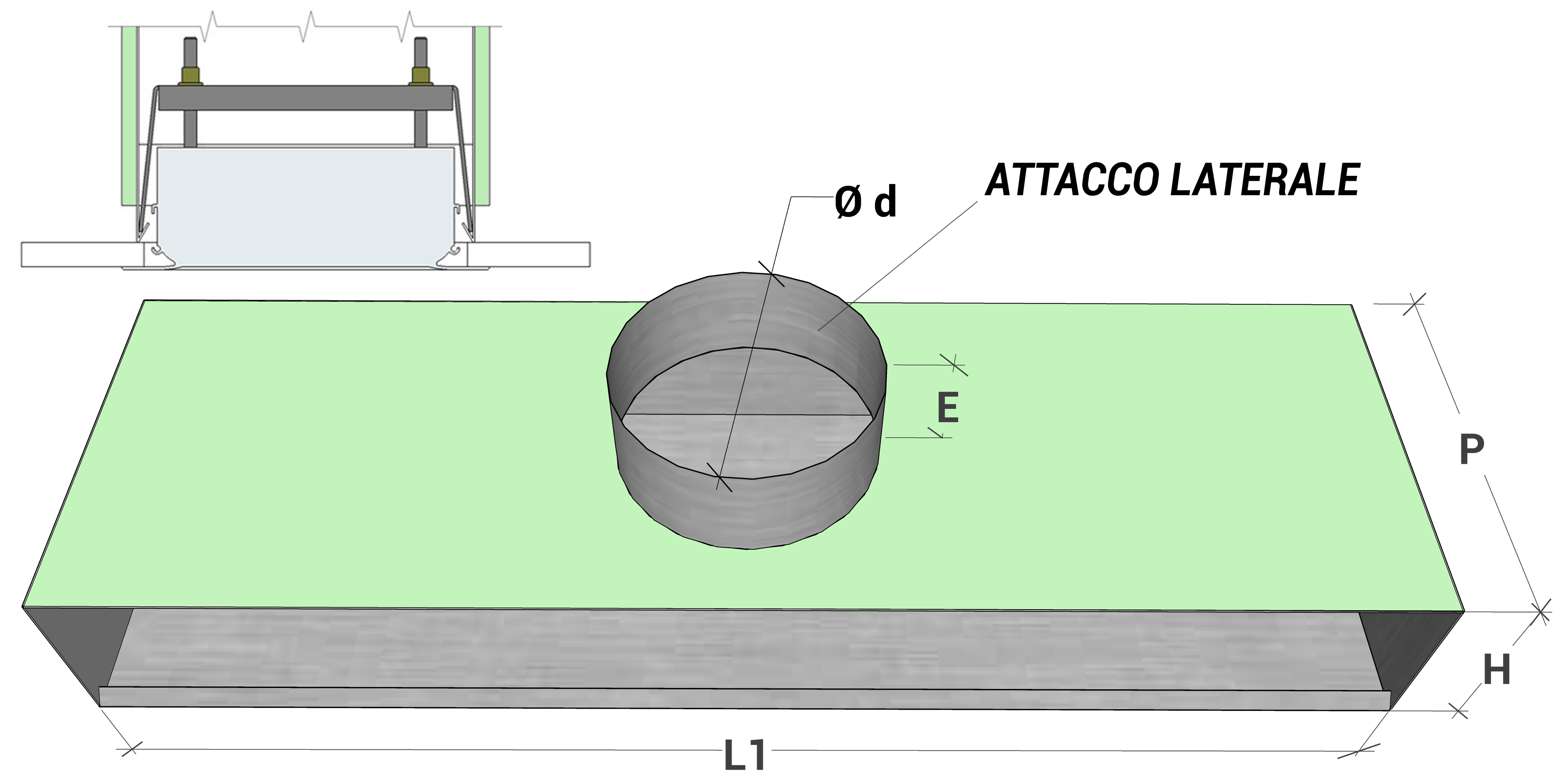 Dimensioni plenum e sistema di montaggio con ponti di fissaggio