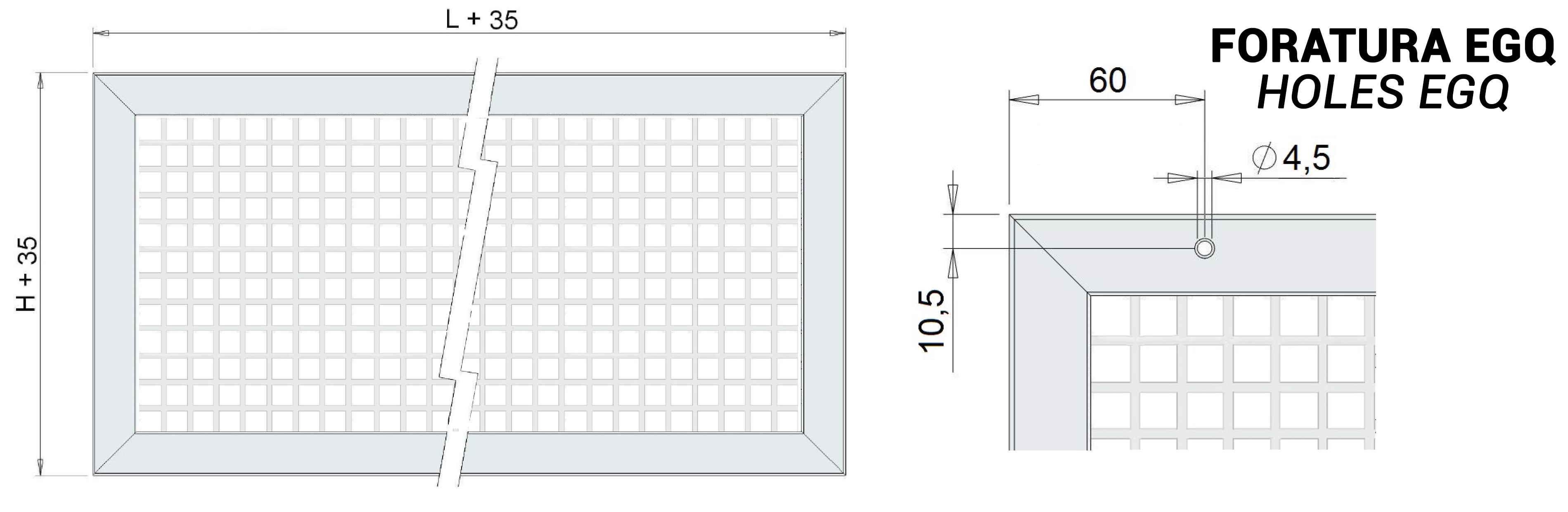 Con grigliato a maglia quadra 13x13 mm inclinata a 45° (EGQ-I)